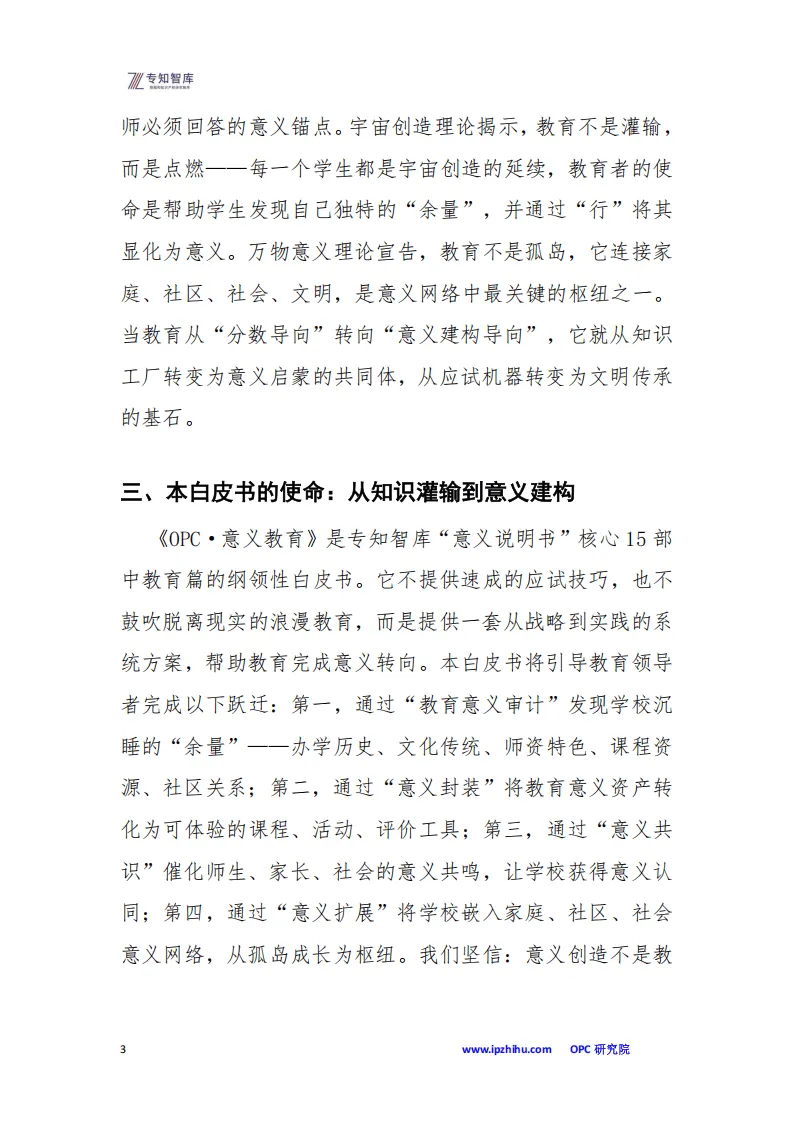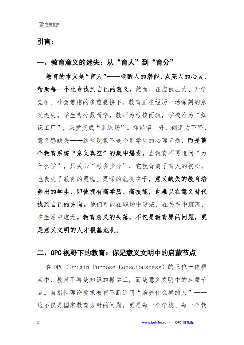 这份白皮书聚焦教育从知识灌输向意义建构的转型,提出以OPC(起源-目的-意识)框架重塑教育本质,破解当下“育分不育人”的意义迷失困境,助力学校成为意义文明的启蒙节点。