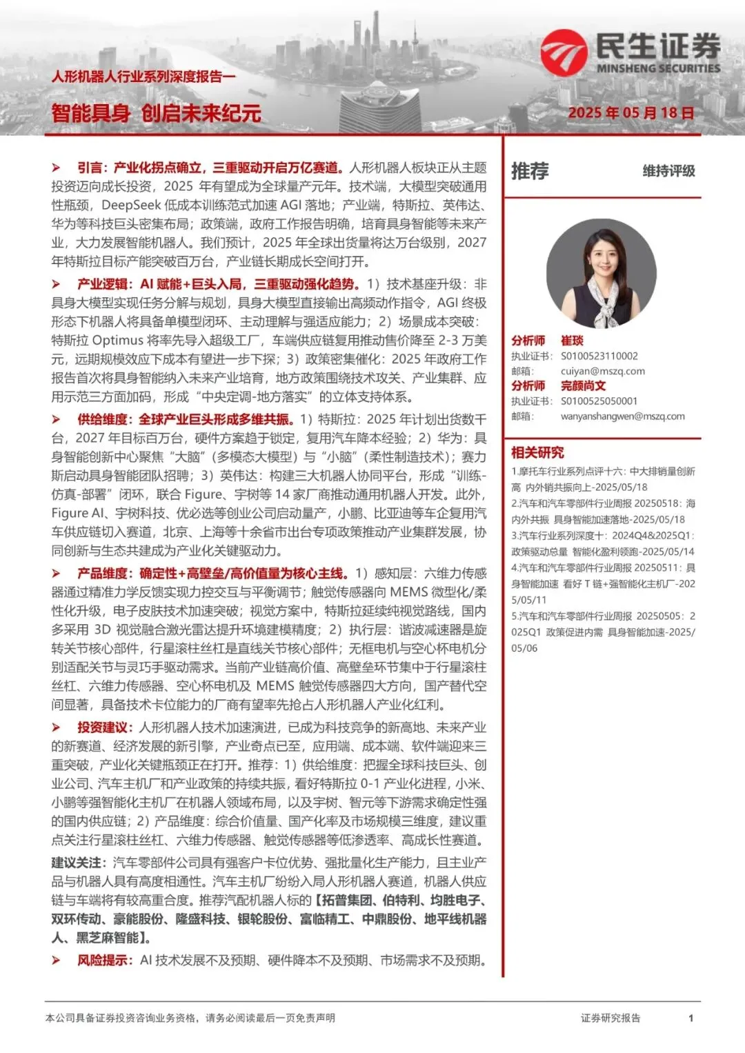 为您节省90%的搜报告时间。欢迎加入【人形机器人星球】分享会,这里是您获取前沿洞察的直达通道,加入即可下载全部报告。在这里,您可以获得:• 海量精品报告:大量中外文人形机器人专题报告优先分享。• 即时更新:最新动态与报告第一时间推送,永不错过风口。• 完整资料库:入群即解锁过往全部精华报告合集,一站式下载。