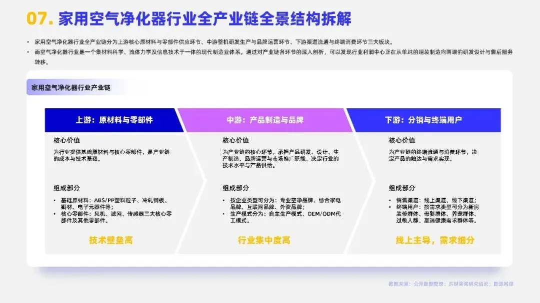 产业链特征:上游成本优化推进,中游技术向催化分解、智能联动升级,下游场景化需求爆发。