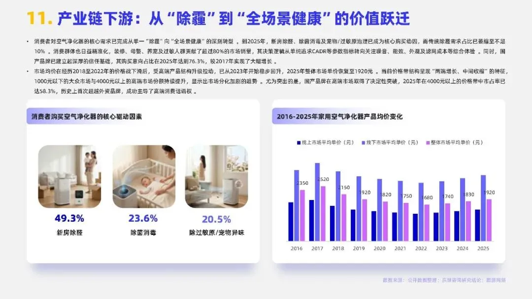 核心变化:新房除醛、除菌消毒、宠物/过敏原治理已取代除霾成为主要购买动因。