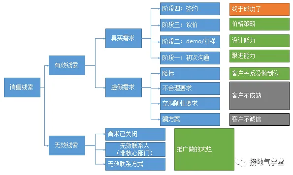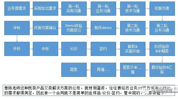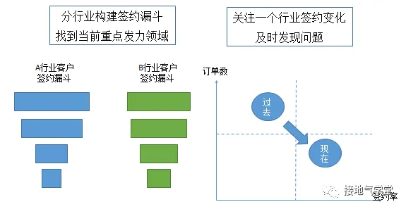 B2B业务,服务的是企业经营目标。同样是买牛奶,如果是拿牛奶当原料。就得考虑“我做出的奶制品是不是能卖出去,帮我赚利润”如果是拿来给员工喝,那就得考虑“是不是员工喜欢这个,会不会被投诉”。这是B2B和B2C最本质区别。我们想理解B2C业务,往往假设自己是消费者,体验一把流程。可想理解B2B的业务,你是无法假设自己是消费者的,得站在经营者的角度去思考。不然,就会闹出开头“扛着一麻袋钱去买奶茶店”的笑话。B2C是个人消费,所以自己拿主意就好了。可到了B2B完全不一样,决策成员非常多。想采购牛奶,还得走招标流程,还得走财务流程,还得走物流流程,还得走仓库管理流程,还得送各级领导审批。如果是小企业也就算了,大企业里敢省一个流程,分分钟审计怼上门来……B2C是个人消费,一手交钱一手交货。可B2B往往复杂得多,签约只是第一步。后续交付还有首款、中期款、尾款各种麻烦。前边举的买牛奶,已经是最简单的形式了。如果是陈老师所处的软件开发服务行业,来感受下,这漫长的的从签约到交付过程(如下图)。B2C是个人消费,买的东西便宜,完全不纠结。比如买牛奶,不好喝下次换个牌子就是了。对企业而言,用户今天跑了,明天我打个折可能就回来了。但B2B完全不同,如果签的是年度合作协议,那一但丢掉客户,就是一整年颗粒无收。如果客户签的是3-5年长期合作,那一但丢掉就可能3、5年不再来往。反之,如果是行业领军客户,一但拿下,整个行业的订单都能被我吃个七七八八。B2B就是这么赢者通吃。所以一定要类比,可以把B2B业务,比作装修房子这类B2C业务,同样是采购金额大、决策流程长、决策机制复杂、首款尾款、交付过程长、一但采购完成就需求关闭(不过还体现出不少数大客户的营销)。陈老师还是强烈建议,做B2B分析多花心思去了解业务细节。因为很多业务流程也会随着客户需求变更、定制,打比方只适合教学,不适合工作。所有的数据分析,都绕不开是多少、是什么、为什么、会怎样、又如何这五件事。B2B的分析也是如此。只是B2B的分析,会在是多少上花格外多的精力。一来,B2B采购本身涉及的客户组织架构、决策流程、工作流程特别复杂,需要额外信息;二来,客户单个价值大,一但失去后果严重,不存在重复做试验的空间,每一个客户都得努力争取;三来,客户不会高频次采购,一但形成关系难以更改,因此所以不像B2C,没有客户信息可以慢慢收,不了解客户需求可以慢慢Abtest,不能拿着RFM数据推测未来(大部分R)365天,F=1)。B2B要的就是精准打击,一击致命。具体的细化需求,有三部分:直接上图,B2B的客户画像,更多从客户企业实力、需求规模、流程长度、谈判对象这些角度进行。和B2C不同的是,B2B的客户画像采集难度更低,往往这些企业相关的信息都可以通过客户拜访、企业年报、行业报道、相关企业介绍等渠道获得。特别是一线销售,对此非常清楚(愿不愿意告诉公司,是另一回事)。完全不用担心“窃取个人隐私”等问题。在用户画像的使用方法上,也有不同。B2C卖的很多都是必需品,用户是一定有需求的。问题是:哪一品牌、哪一Sku、哪一价格有需求。因此,B2C用户画像本质,是筛选特定产品的高响应率用户。B2B如果客户没需求,真的就没有了。如何判断B2B客户的需求?一来,可以从客户经营情况、企业规模、发展走势来判断。比如企业进生产原料,肯定订货额和自身销售额成正比。比如卖软件,一个千万级企业不需要ERP,上亿了就得上了。二来,可以从客户与我们的关系来判断。B2B领域存在大量灰色操作,这也是常见的事了。需要注意的是,B2B采购需求一但发出,就进入倒计时阶段。客户不会无限期做甄选,需求发出越久,客户见识的供应商越多,成交几率越高,筛选的也越具体。因此收到销售线索后,判断该线索所处时间段,第一时间跟进,是非常重要的。跟进销售线索的过程是复杂的。对于步骤超过2的流程分析,都可以用漏斗分析法。B2B在售前阶段,跟进流程分析的基本思路也是漏斗分析法。跟进流程核心就是签约,因此,针对单一线索,要关注跟进到了哪一阶段,具体失败原因(如下图)。针对众多线索,则要分门别类,看不同地区、行业、企业、线索来源的签约率&签约金额,从而针对性制定计划,看我们要打哪些地区,哪些特殊企业类型,从一个行业签约情况变化中发现问题(如下图)。直接上图,B2B的售后流程也是分阶段的,但不用漏斗分析法。因为售后阶段原则上不允许回不了款!死,也得把钱死回来!因此B2B售后流程分析,更多是提示风险,预计问题,关注进度。客户信息除了一个企业名字一个电话就没了,连接电话的人是什么职位都不知道。企业的其他信息也不清楚。最过分的,连客户信息的来源地点,来源时间都不清楚。人家客户的需求都关闭了,还傻乎乎地找上门问……最后结果自然凄惨无比,数据分析也无从分析。这里有两种常见情况,一种是销售们根本懒得记录:什么时候跟、跟进了谁、跟进反馈如何、下一轮跟什么,一无所知。第二种是销售们为了应付检查,突击跟进。要求3天内打电话联系客户,就在第三天突击打完。要求填写信息,就在月底检查前一天突击写完。最后提交的数据都是垃圾。是滴,B2B分析的最大难点就是:没数据。什么都没有。只记录了签约那一刻的简单数据,然后理所当然地以为,只拿这么一点点数据,就能分析出各种问题