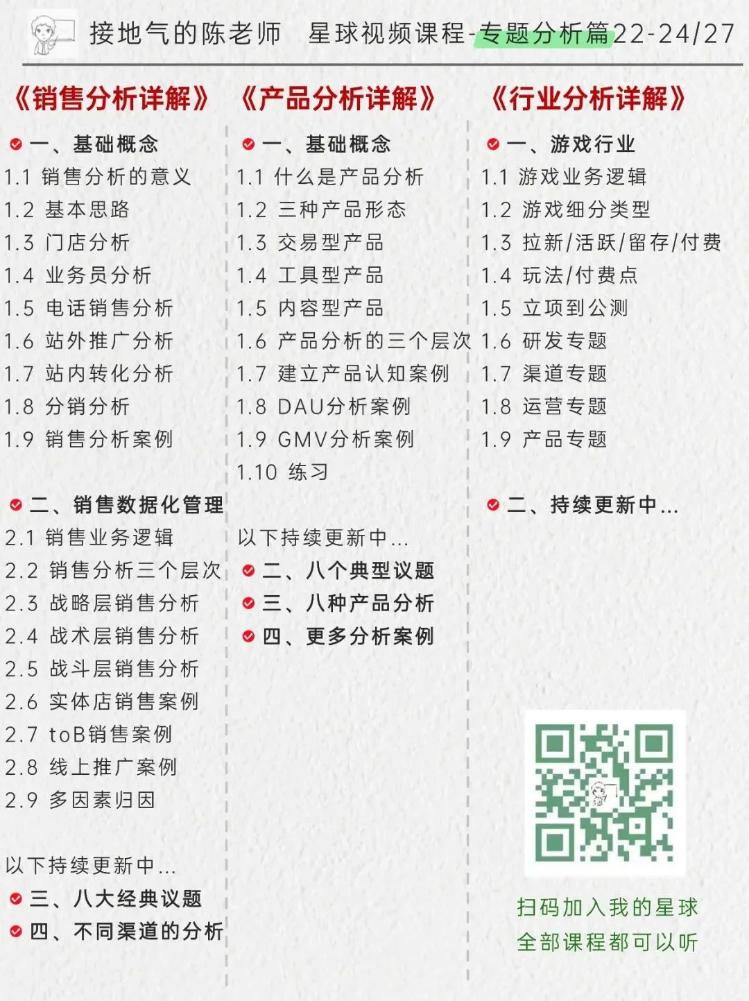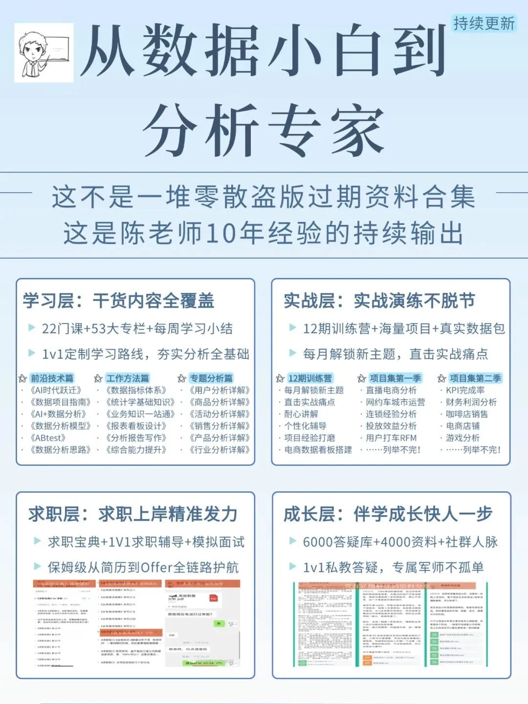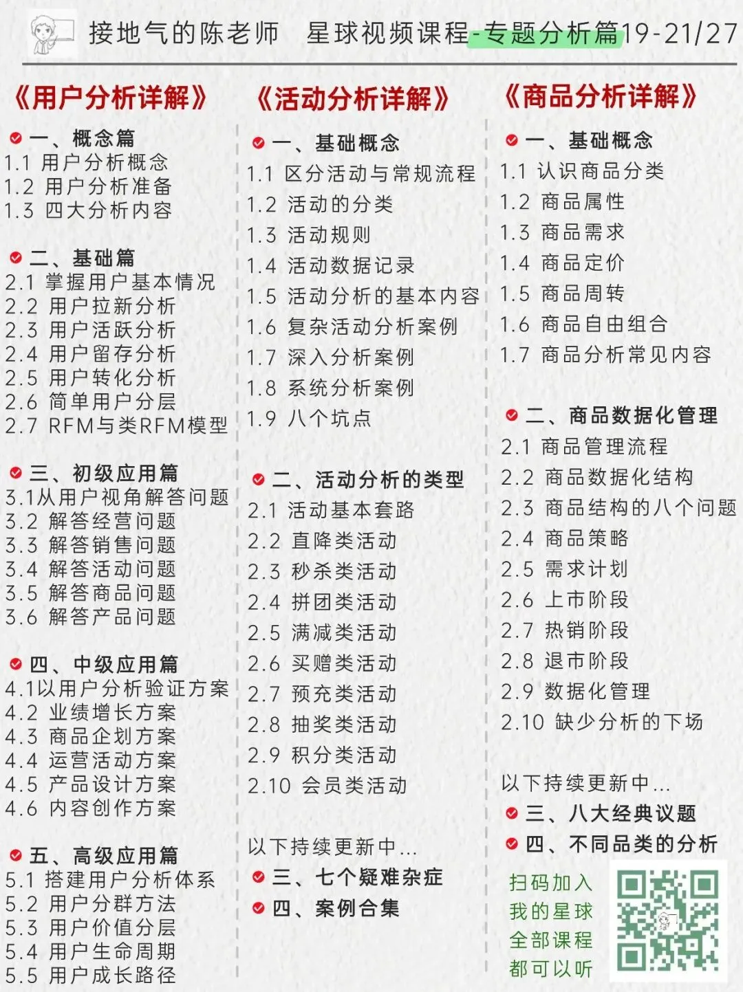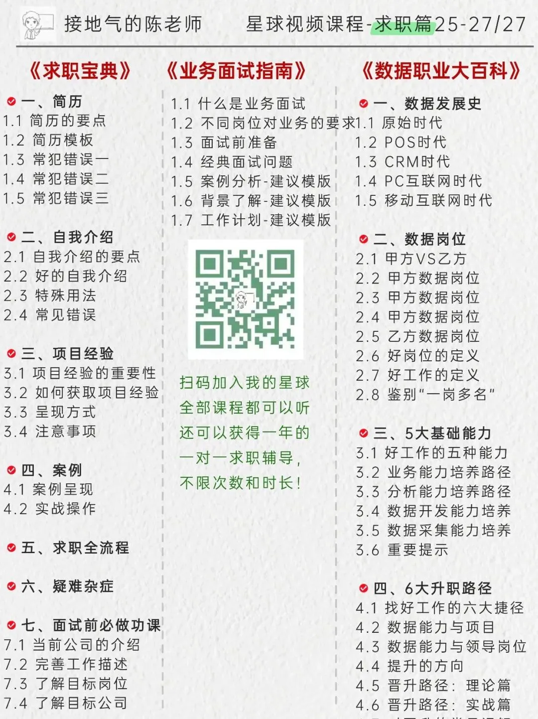 课程目录如下,加入星球我就给你一对一制定学习计划,通过【视频课程-参加训练营-做实战项目-一对一辅导】的路线,进步看得见!点此详细了解星球:我的AI数据学习小圈子