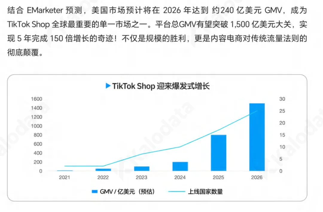 白皮书给出的核心数据非常明确:预计2026年TikTok全球电商GMV将突破**1万亿美元**,整个大盘还在保持高速增长,但行业的底层逻辑已经变了。