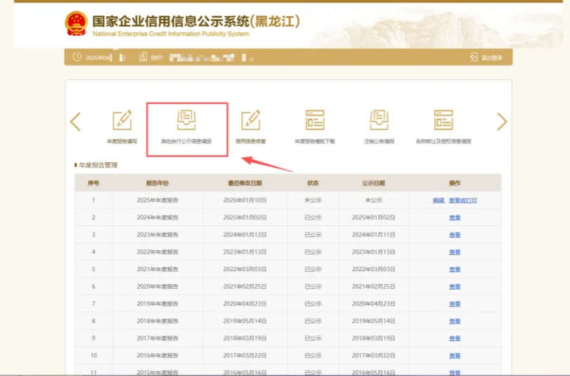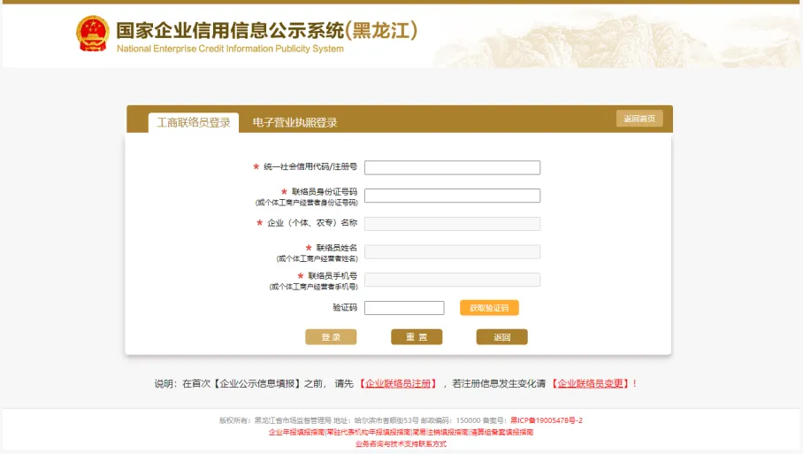 1.网上填报:打开国家企业信用信息公示系统(黑龙江)