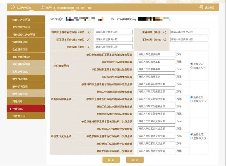 11.社保信息包括如下情况:参保各险种人数指报告期末参加社会保险的职工人数(不含离退休人数)。单位缴费基数指报告期内单位缴纳社会保险费的工资总额,按缴费人员的应缴口径计算。本期实际缴费金额指报告期内单位实际缴纳的社会保险费,不包括补缴欠费和跨年度(或跨季度)的预缴金额。单位累计欠缴金额指截至报告期末单位累计欠缴各项社会保险费金额(本金)。如还未缴纳社保,则在各处填写“0”。