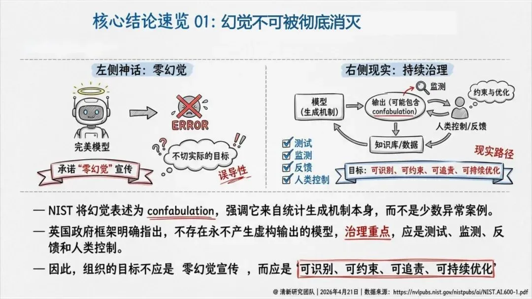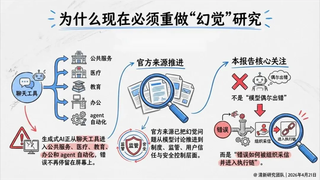 最近一份基于政府与监管机构来源的《AI幻觉深度研究报告》指出:幻觉不是“偶尔说错一句话”,而是从生成到采信到执行的系统性风险。更可怕的是,语言越像专家,用户越容易信以为真。