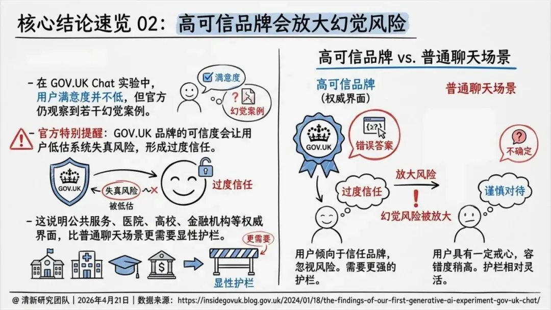 也就是说,权威界面不是风险缓冲器,而是风险放大器。越是公共服务、医疗、金融场景,越需要显式护栏。