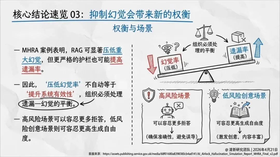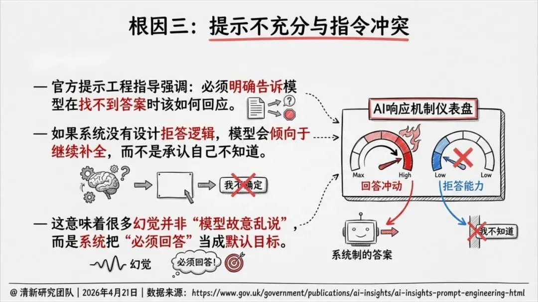 第一,允许AI说“不知道”。 一个不能拒答的系统,必然会用语言填补空白。对医疗、法律、政策等高风险场景,“不答”远胜“乱答”。