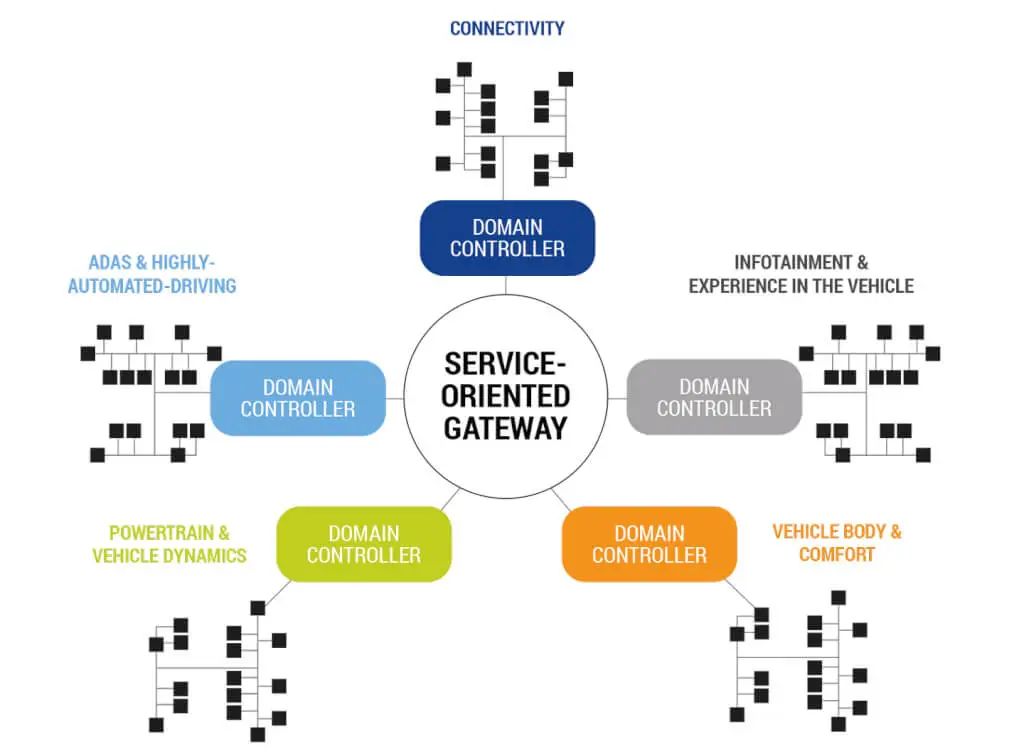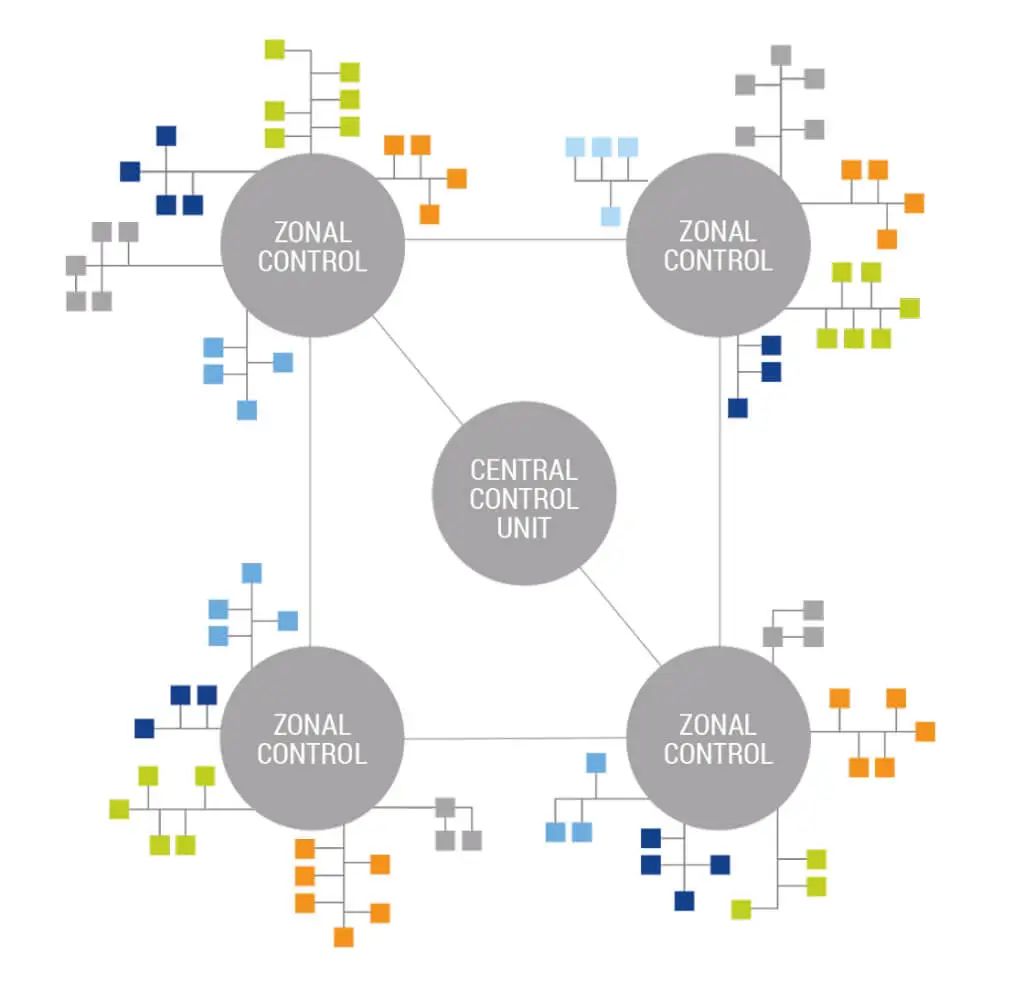 物理区域中由区域控制单元监控的所有任务都被分配给该区域。这样照明、图像传感器、转向灯、制动器、转向、悬架等就可以组合成一个共同的区域。