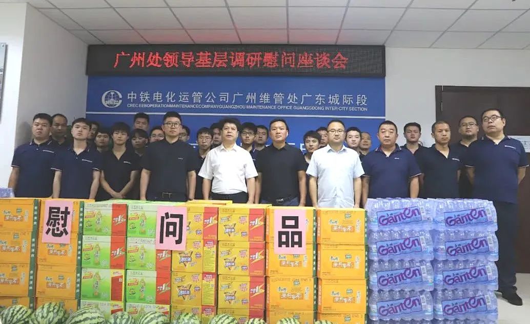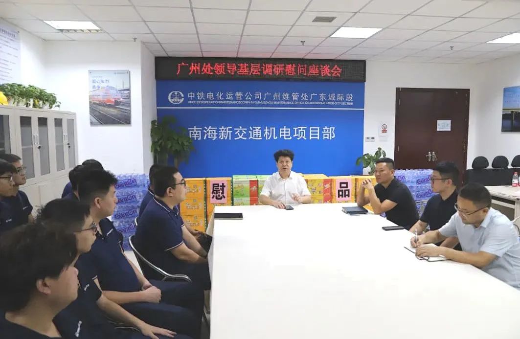 近日,广州维管处处长梁建国,处长助理韩斌到广东城际段佛山机电项目部调研并慰问一线员工。