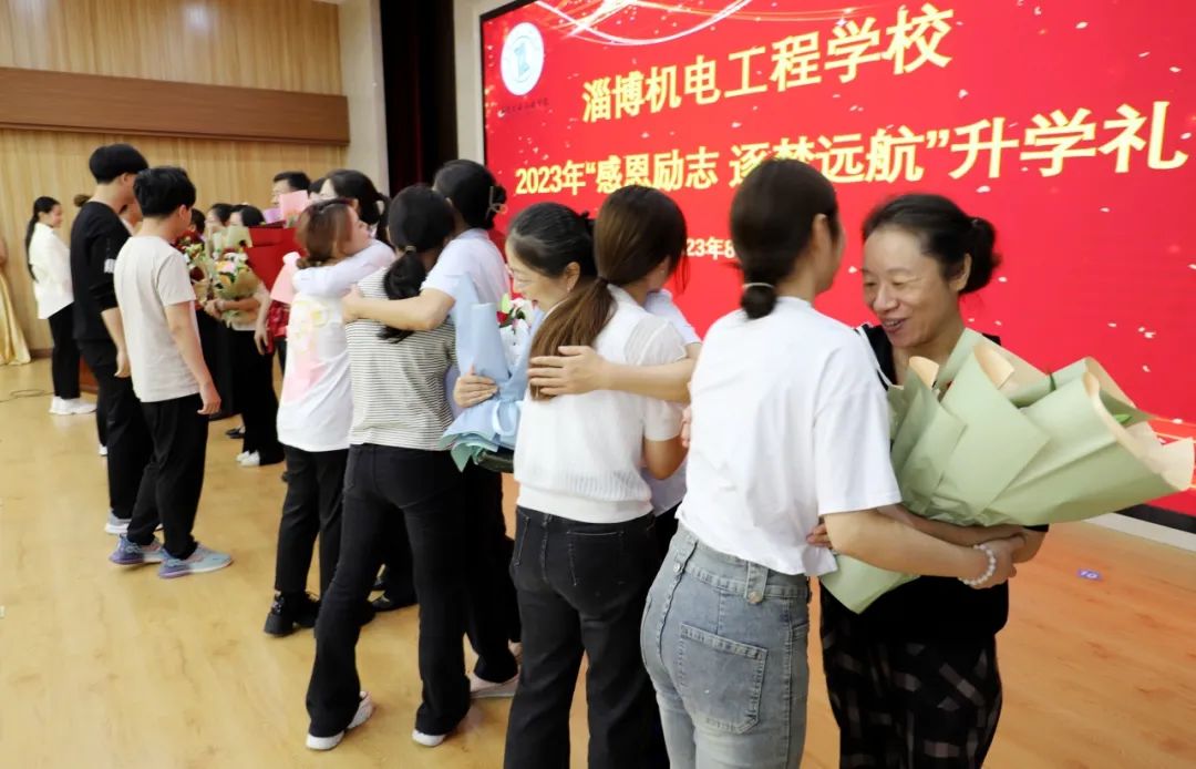 颁奖台上毕业生为高三各任课教师行谢师礼,行感恩礼,献花并送上锦旗,以此感谢各位老师三年如一日的精心培育,用知识浇灌学生,用激励督促自己,最后怀着感恩之心与老师热切相拥。