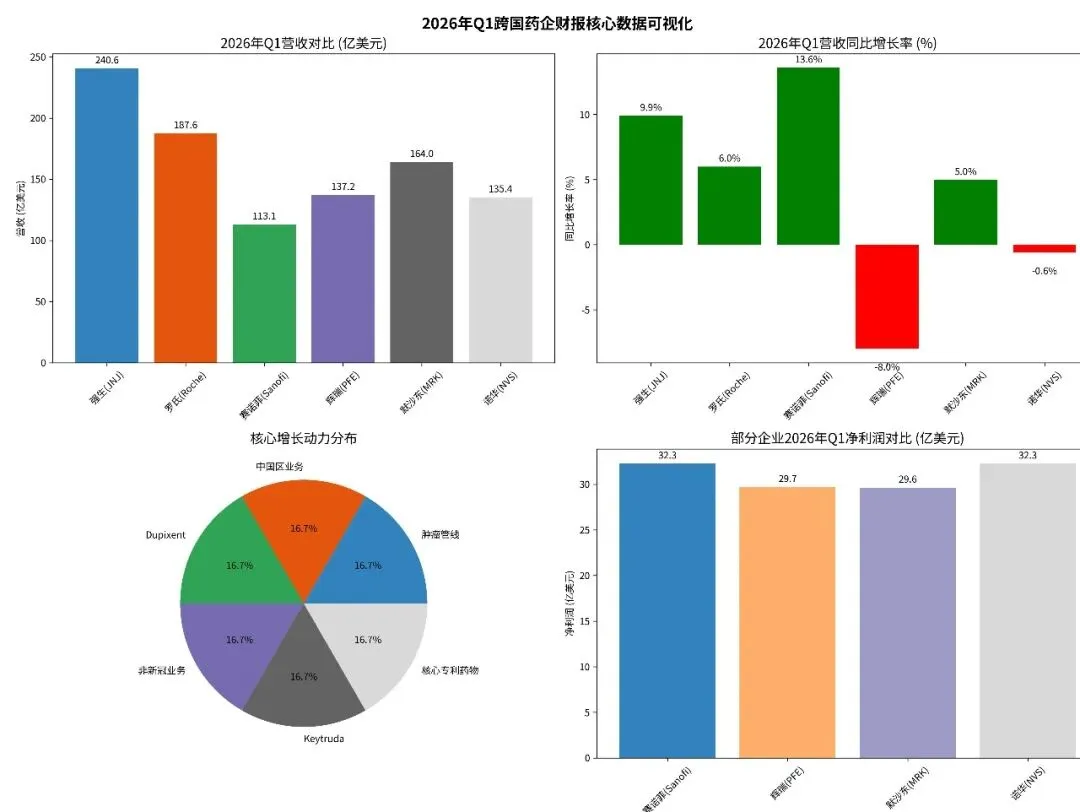 以下是六家头部药企的Q1核心数据复盘与深度解析。