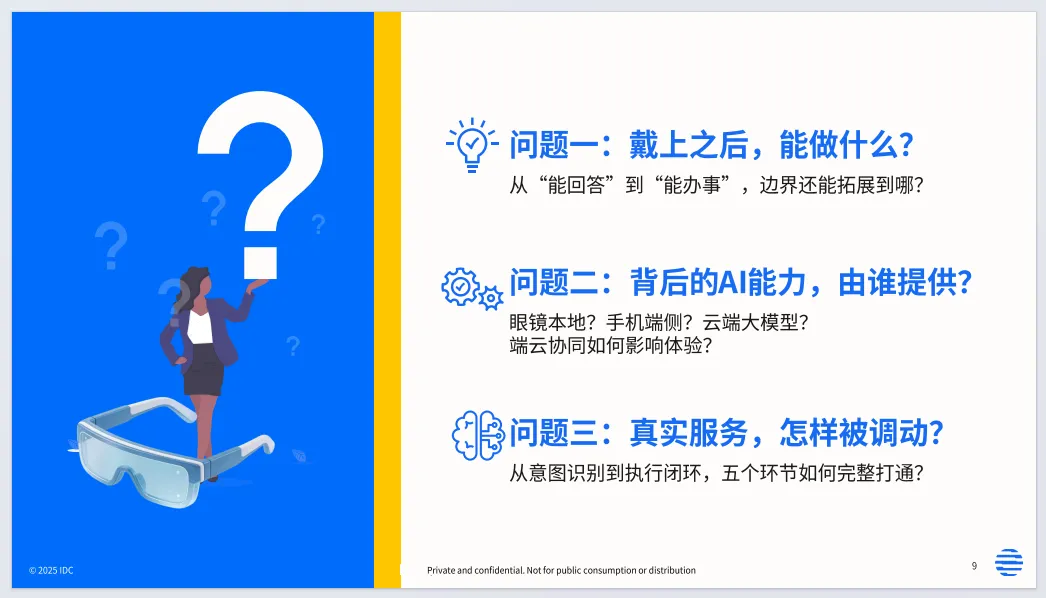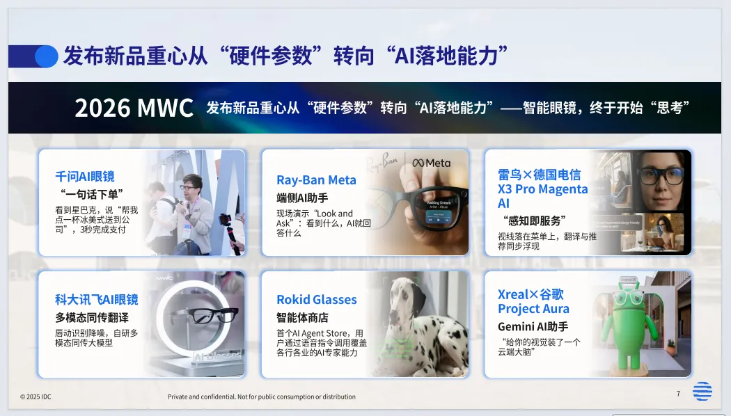 产品端向轻量化、长续航升级,50g以下产品占比将超45%,非全彩眼镜占比超85%,差异化竞争成型。AI成为核心引擎,端云协同调度算力,角色型智能体落地办公、翻译、出行等场景,跨设备协同成为新入口。