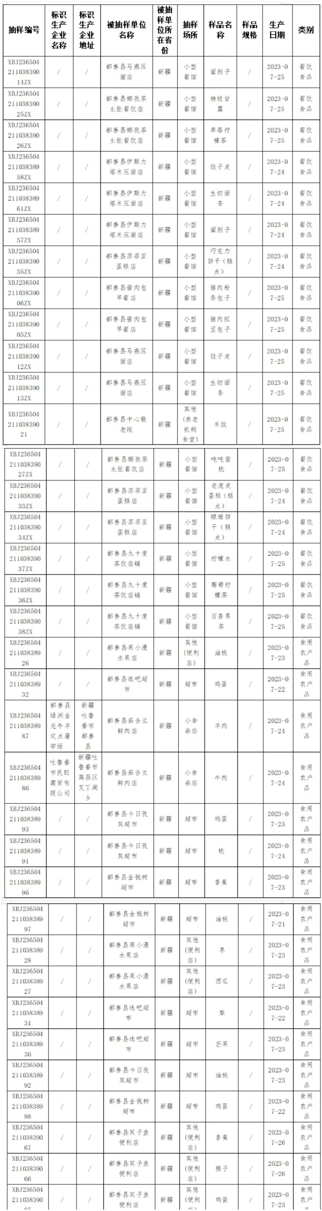 关于公布鄯善县2023年第七期食品监督抽检信息的公告