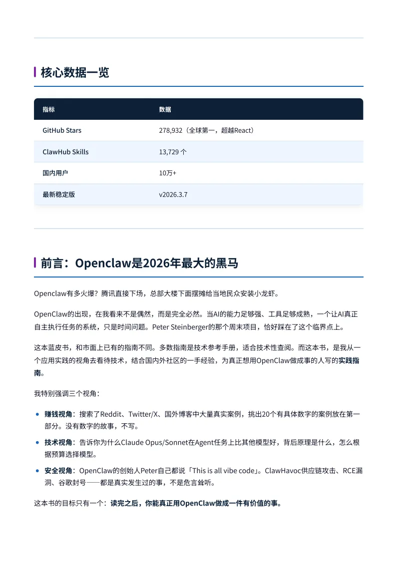 这份《OpenClaw蓝皮书》是面向2026年AI Agent生态的实战指南,围绕OpenClaw这一开源AI Agent框架展开,覆盖从入门到落地的全流程,核心是助力普通用户与开发者用AI Agent实现效率提升与商业变现。