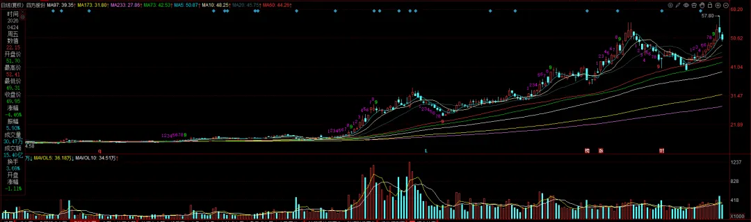 静态PE、动态PE、最新价分别为:50.20、50.20、49.95