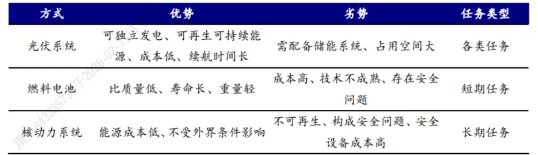 太空环境严苛,化石能源补给困难、核能技术复杂且安全管控严格,燃料电池仅适配短期任务,而光伏系统具备独立发电、可再生、低成本、长续航的优势,适配各类太空任务,是商业航天经济闭环的核心前提。若缺乏低成本批量的太空光伏系统,万星级低轨星座将面临难以逾越的能源补给鸿沟。