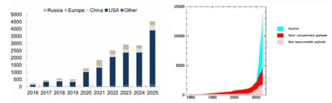 2. 商业落地维度:传统航天光伏定制化模式(2-3年研发周期、百万元/平方米成本)无法适配万星级星座需求,市场倒逼产业链向标准化、模块化、批量化转型。2024年全球航天发射263次,同比增长18%,中美成为主要增长动力,东方红天选、银河航天等企业已率先推进标准化转型,目标以50%成本、30%周期实现批量供应。
