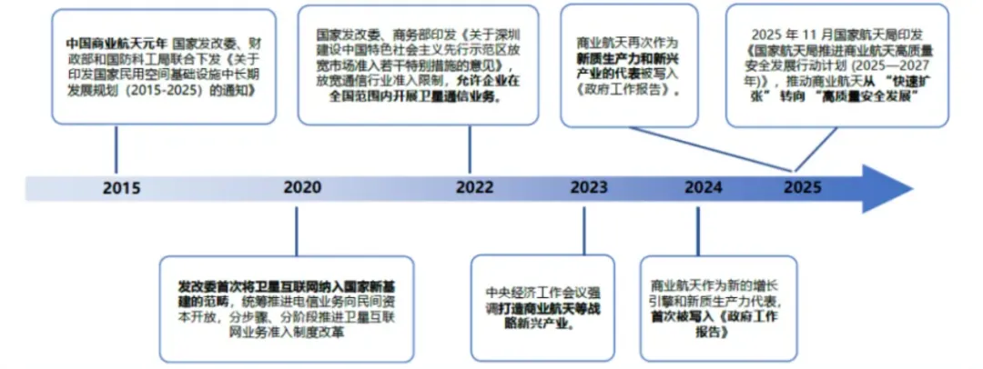 国内政策层面,党的二十大报告明确加快建设航天强国,先进电能源技术成为发展新质生产力的底层保障;商业航天连续两年写入《政府工作报告》,卫星互联网被纳入国家“新基建”;《国家航天局推进商业航天高质量安全发展行动计划(2025-2027年)》明确支持技术创新、成果转化,设立商业航天发展基金,重点扶持关键卡脖子领域。此外,依托“863”计划、创新基金等,国内科研院所与企业积累深厚技术,国企改革推动宇航电源从定制化向量产化转型。