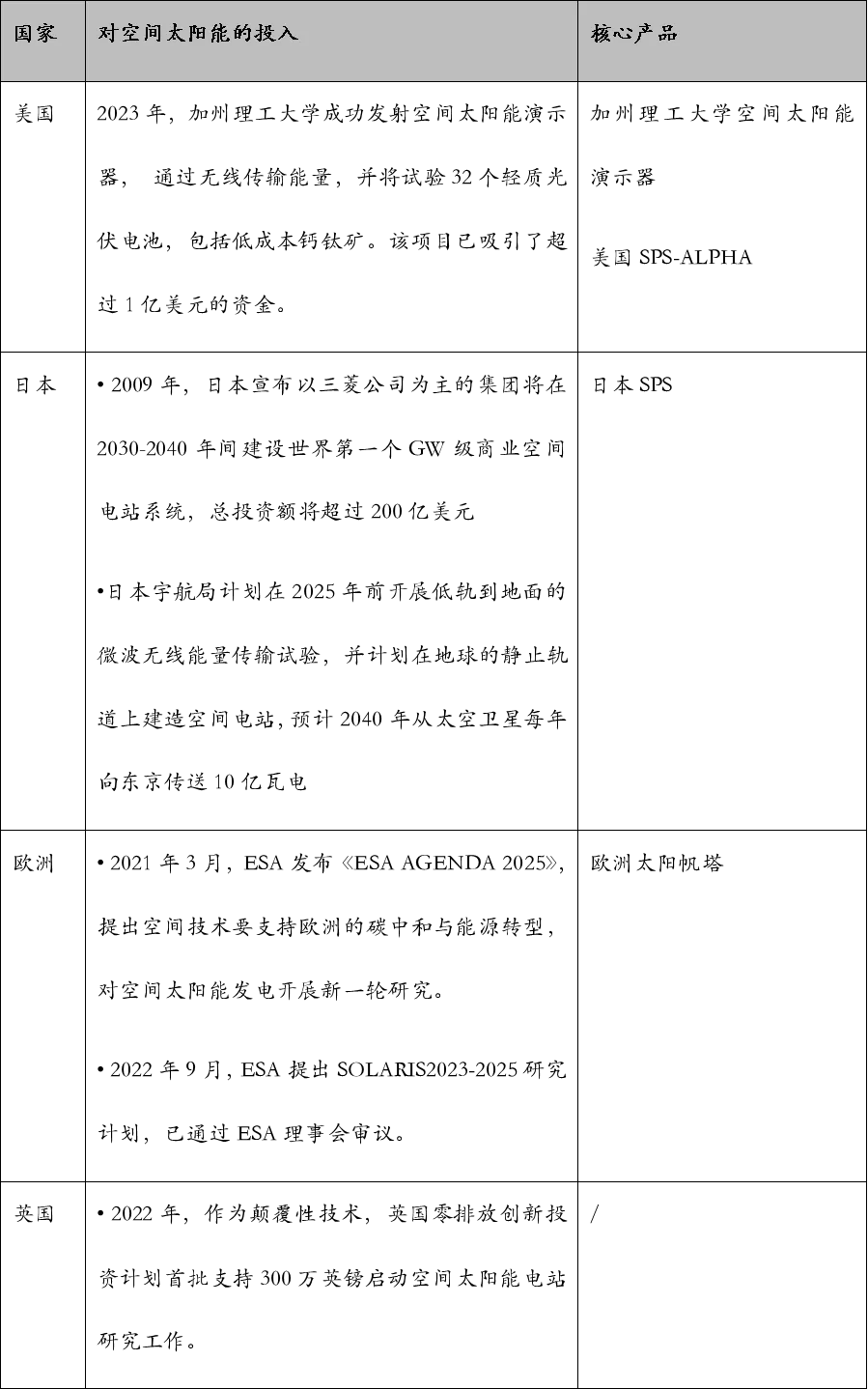 全球布局层面,各国加大空间太阳能投入,核心进展如下:美国(加州理工发射空间太阳能演示器,吸引超1亿美元投资)、日本(2030-2040年建设GW级商业空间电站,2025年前开展无线能量传输试验)、欧洲(ESA推进SOLARIS研究计划,助力碳中和)、英国(投资300万英镑启动研究,计划2040年向电网输电)、中国(西安电子科技大学“逐日工程”完成地面验证,技术达国际领先水平)。