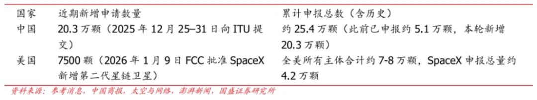 1. 军事与战略维度:太空成为大国博弈核心,低轨星座具备通信、侦查、导航等战略价值,ITU“先占先得”规则推动各国加速占频保轨,中国已申报超25.4万颗卫星,直接催生太空光伏巨量需求;太空算力中心可规避地面打击,具备国防战略意义;深空探测装备竞赛(美国阿尔忒弥斯计划、中国国际月球科研站等)推动空间光伏部署,无线能量传输技术成为大国竞争制高点。