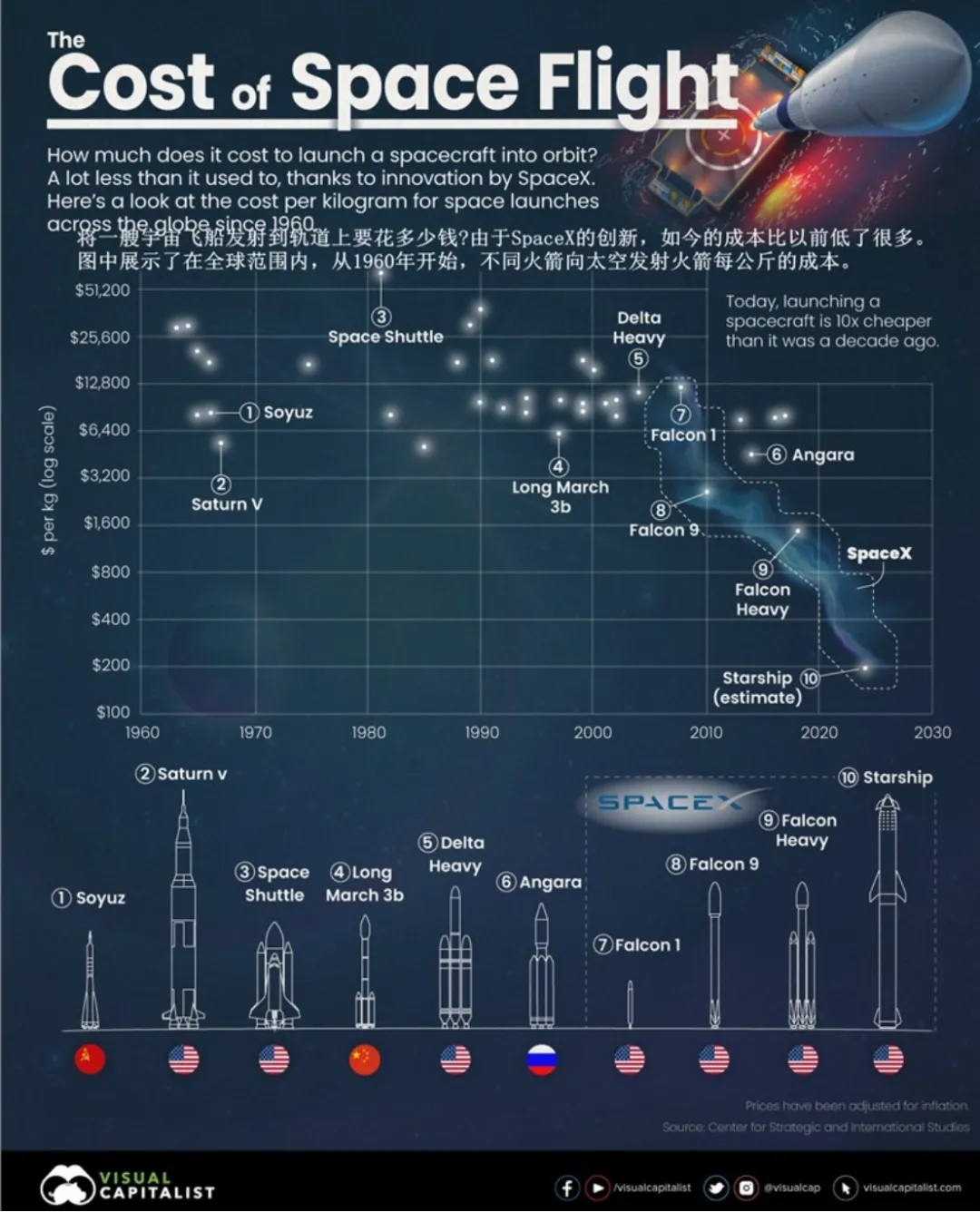 1. 商业航天降本突破:SpaceX猎鹰9号火箭复用技术将发射成本降至1500美元/kg,星舰成熟后有望降至200美元/kg;马斯克规划5年内部署100GW太阳能AI卫星,2026年推进100GW光伏制造产能,验证太空光伏商业化逻辑。