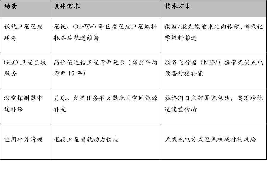 星间充电依托高价值卫星延寿需求实现商业化突破,深空探测处于战略探索阶段,二者均依赖太空光伏技术支撑。