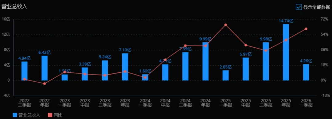 第一,业务规模快速扩张。2025年公司实现营业收入14.74亿元,同比增长47.56%;归属于上市公司股东的净利润1.77亿元,同比增长163.76%。公司正处于业绩高速增长期。