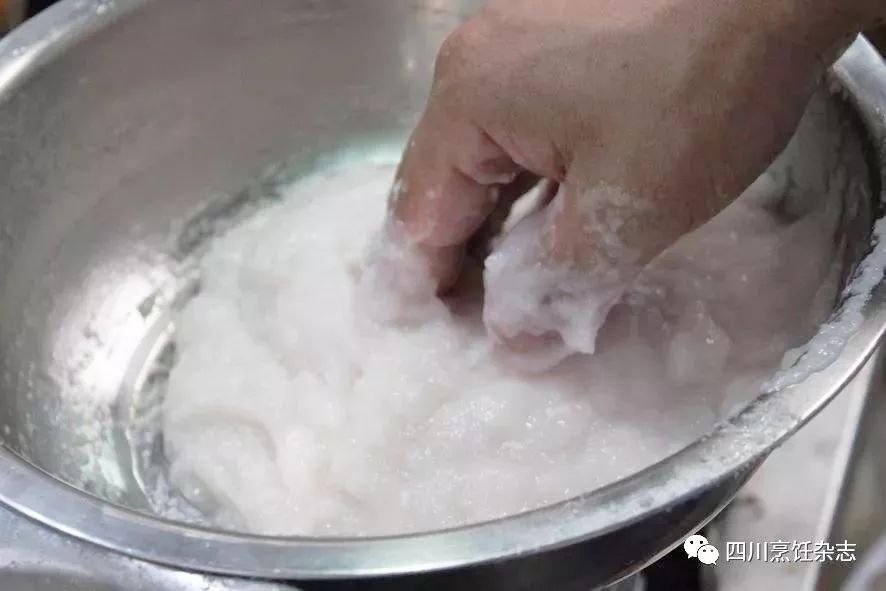 第三,若是把泥料全部倒入沸水锅里汆制,则应立即用筷子快速搅动,否则泥料会迅速凝固而不易搅成豆花状。