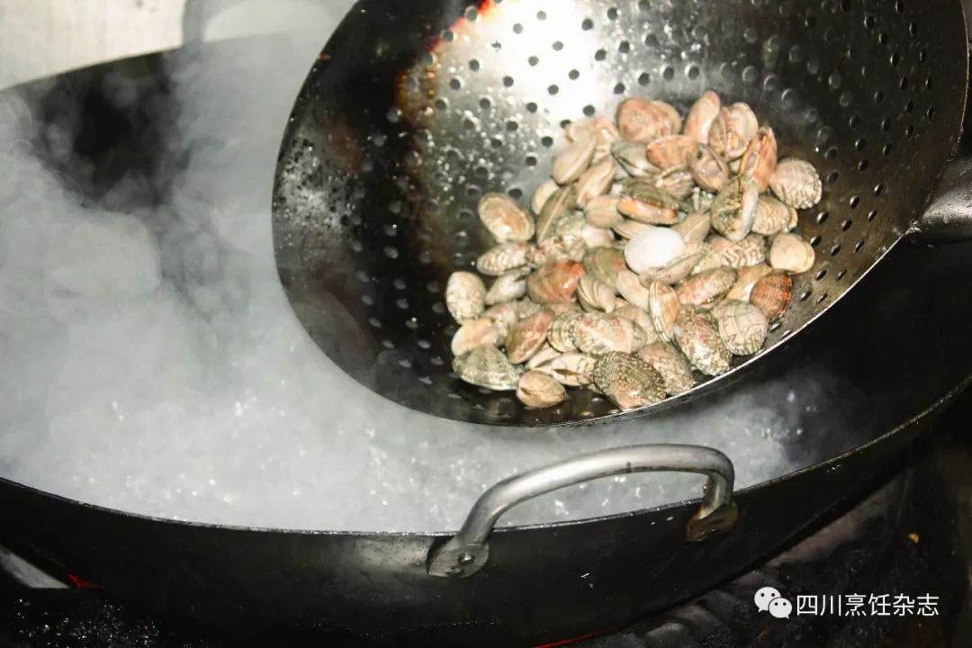 第四,不经上浆的原料下锅后,等到再次烧开后,应改小火(或关火)汆熟,这样原料的口感才脆嫩,否则肉质会发艮,如汆文蛤。