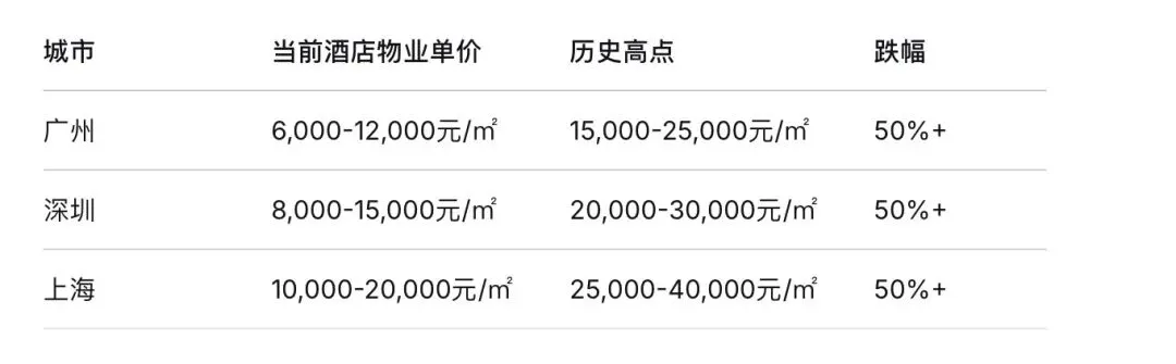 当下商业地产价格正处于周期低位。尤其是一线城市,酒店物业的成交价已经回到2016-2017年的水平。