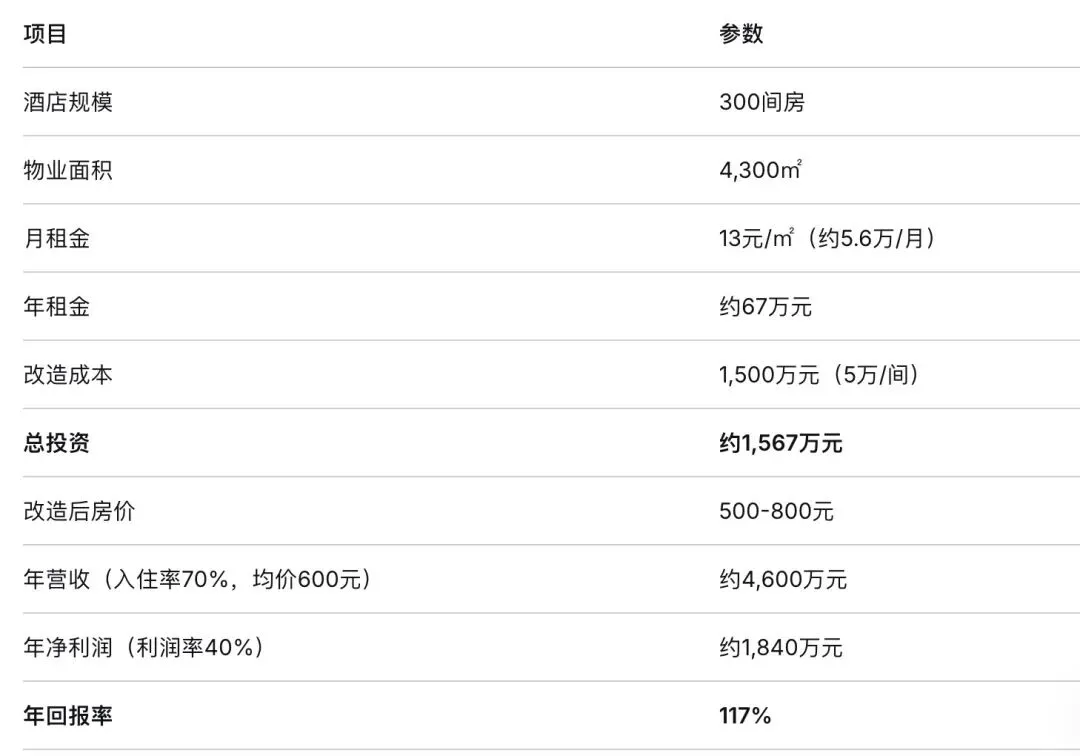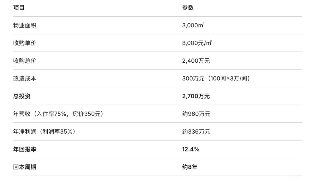 核心逻辑: 在一线城市核心地段,以6000-12000元/㎡的价格买入酒店物业,再花少量成本改造翻新,年回报率可达8%-12%。