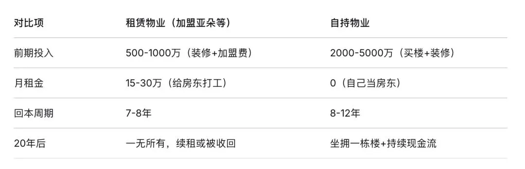 国内,要么做轻(改造翻新),要么做重(抄底物业)。中间那条路——高价租赁物业加盟品牌——是最危险的。