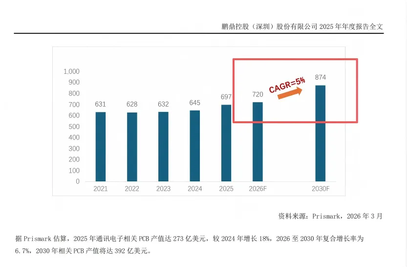 现在站在2026年这个节点上,对高多层板以及HDI电路板预测的年复合增长率,大概都是在20%到百分之十几之间。也就是说,市场整体差,他们就预测保守;市场整体好,他们就预测比较激进。那现在是属于市场预测比较好的,在这种情况下,预测的全球整体的PCB年复合增长率也就是7%到9%之间,这个已经是非常乐观的一个预测了。大家没有必要对PCB这个行业保持神秘感,还是要理性看待这个行业。