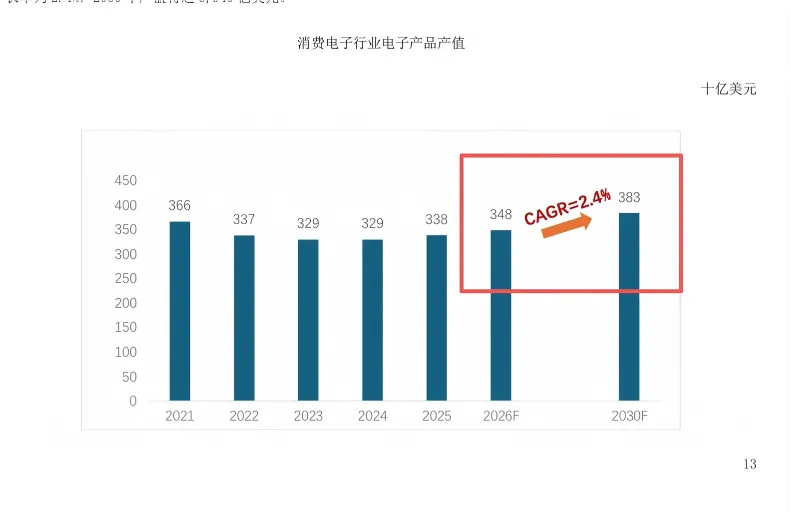 消费电子板块:年复合增长率2.4%。