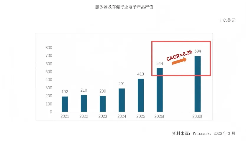 服务器(数据中心)领域:年复合增长率6.3%。