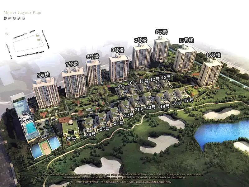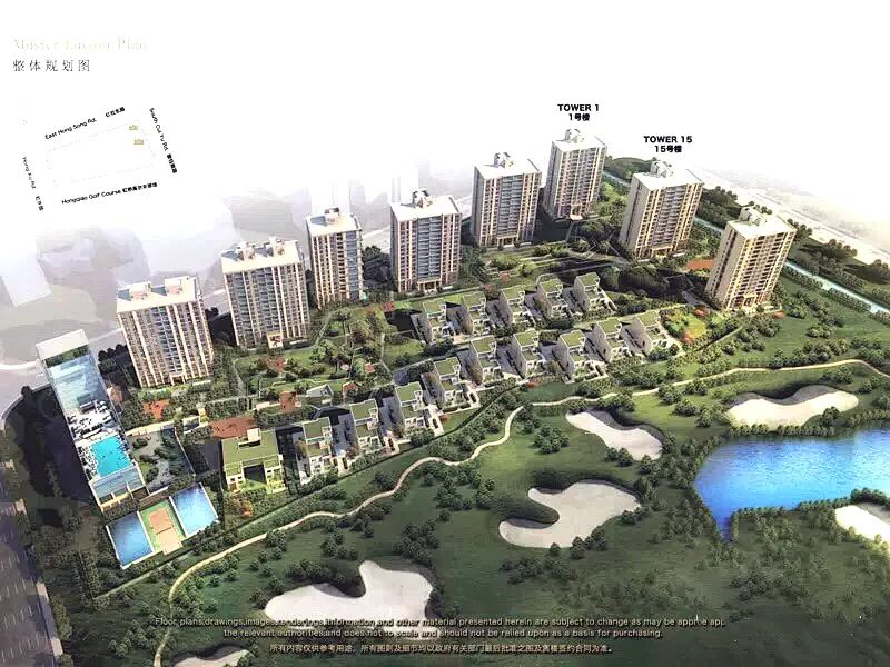 地块占地82000㎡,建筑面积143000㎡,容积率1.75,绿化率达36%。由8栋17层高层,15栋独栋别墅,以及1栋会所组成。每层皆可眺望南向16万方无敌绿地景观,获得视野的完美呈现。