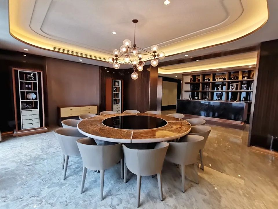 660/681㎡平层的大面宽客厅,实现南向与东向双采光,并直接与阳台及全景露台相连,达到了别墅产品才具有的采光和尺度感。除了客厅以外产品又特别开辟会客区域。
