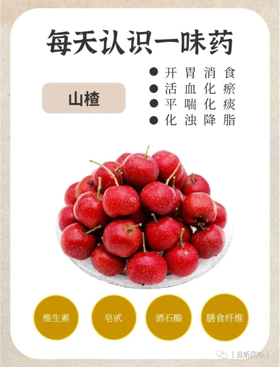 山楂味酸,能增进食欲,改善食欲不振问题,还能促进消化酶的分泌,进一步促进脂肪的消化