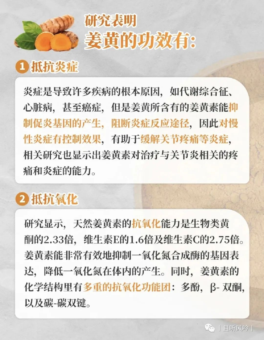 另外姜黄容易消化,可以减轻患者消化道的负担,吃多了可以促进消化不良,还会减轻血脂✨