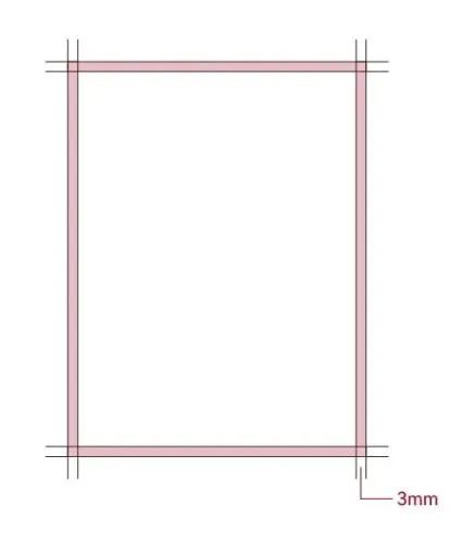 为了防止印刷品在裁切时产生误差,通常会在稿件外围,保留3mm左右的“出血”,来保障作品的完整度。