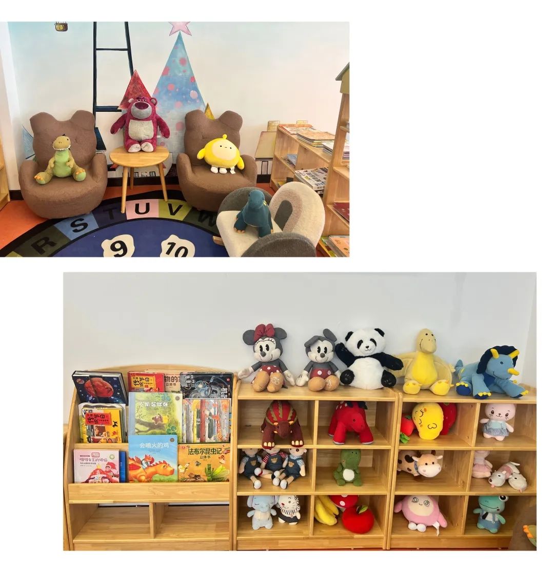 语言区新增了米老鼠、草莓熊、蛋仔、熊猫等公仔,仿真动物全家桶,以及益智手撕安静书,帮助儿童探索未知,增加亲子间互动。