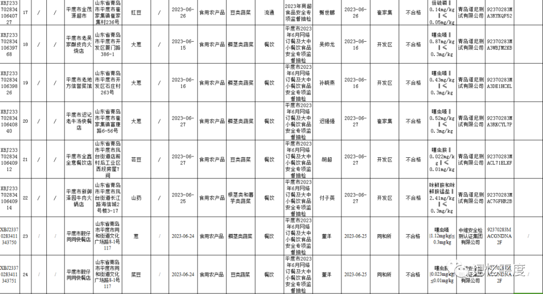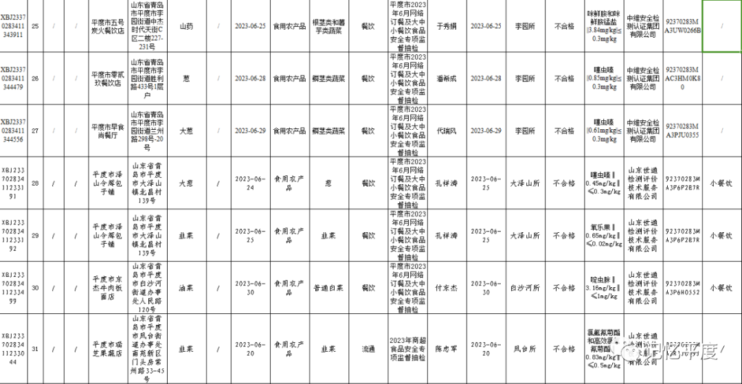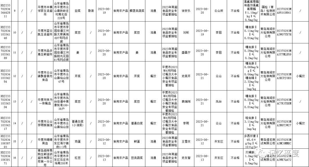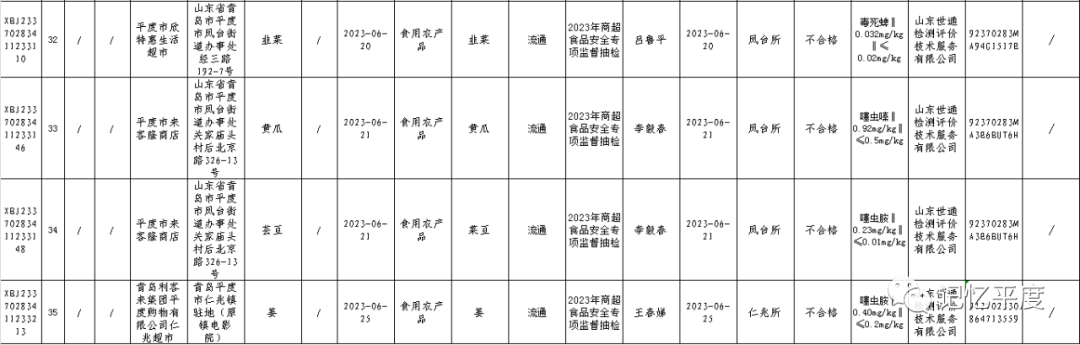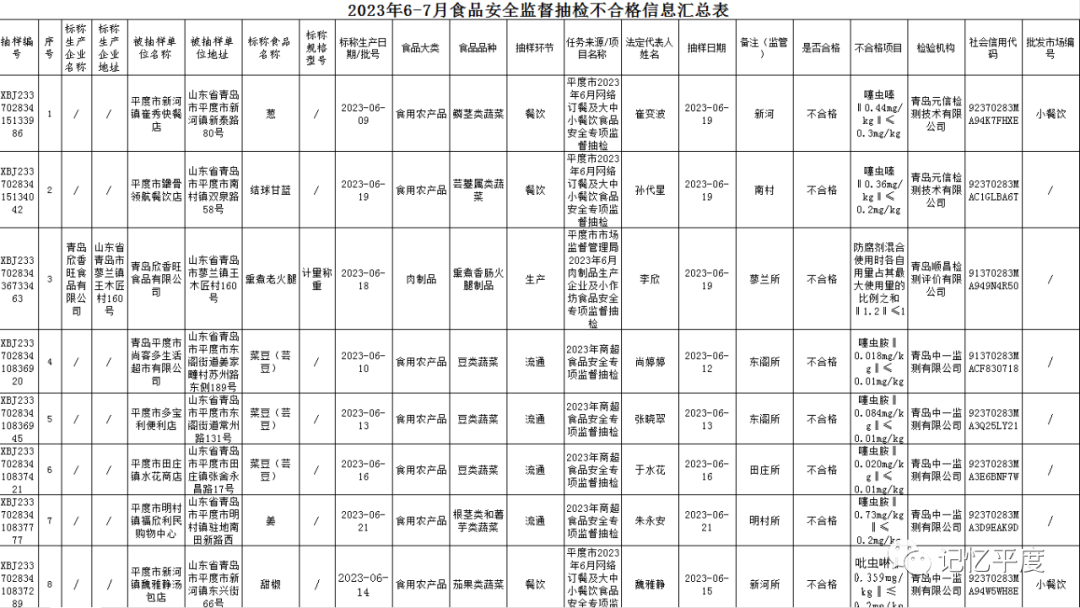 根据《中华人民共和国食品安全法》及其实施条例等有关规定,2023年6-7月,平度市市场监督管理局对生产、流通、餐饮环节890批次样品进行了监督抽检,其中食用农产品、肉制品等35批次不合格,检出了农产品农药残留超标、防腐剂超限量使用等问题,详情请见不合格产品信息汇总表(附件2)。