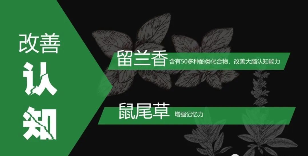 留兰香:含有50多种酚类化合物,可以改善认知能力。缓解大脑疲劳。