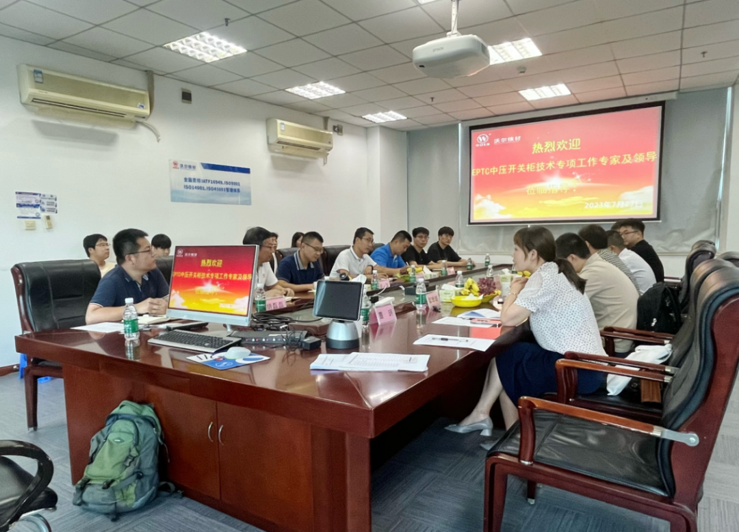 7月27日,EPTC开关技术专家工作委员会中压开关柜带电检测与在线监测技术专项工作组一行7人在深圳市沃尔核材股份有限公司进行中压开关柜带电检测与在线监测设备生产情况专项调研工作。