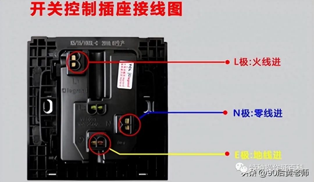 接线孔旁标字母,L为火N为零。