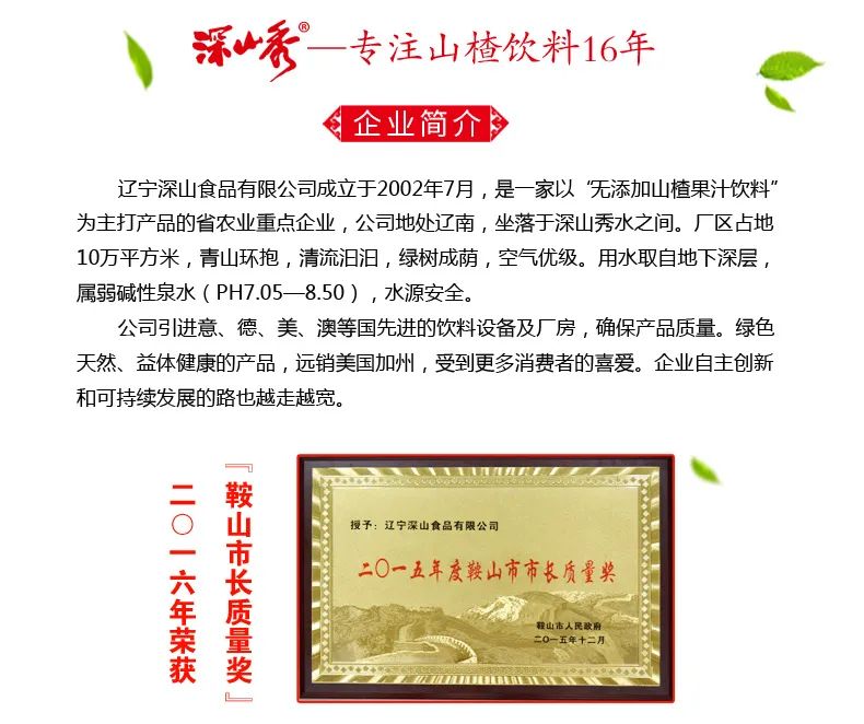 中秋送礼首选深山秀无添加山楂果汁饮料