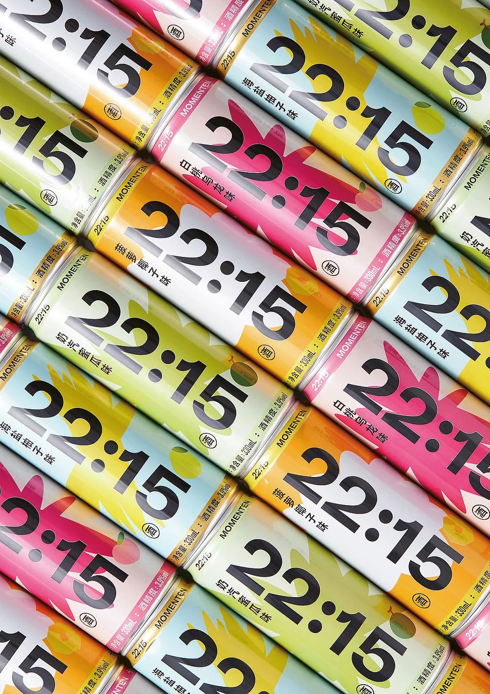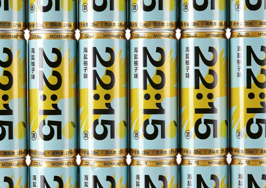 这款MOMENTEN22:15起泡酒,旨在传达生活乐趣。产品名称占据了罐的整个高度,冒号、数字1和一个抽象的彩色物体组成了一张脸。设计成功地在情感层面吸引了目标群体,并以引人注目的方式展示了品牌。
