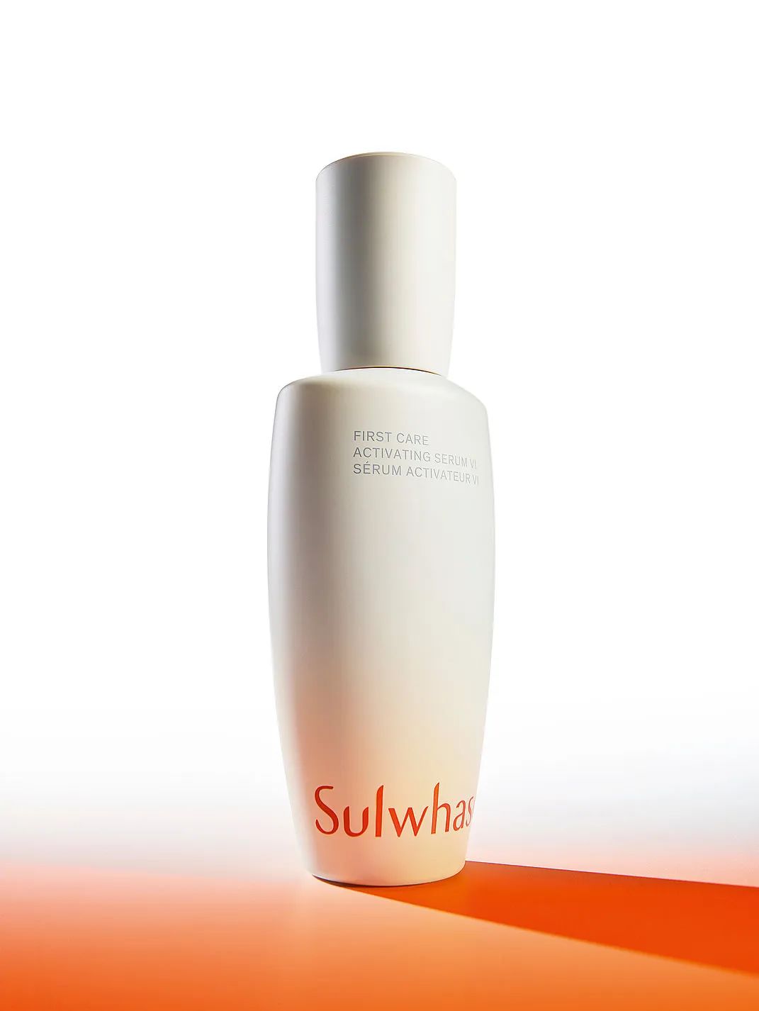 Sulwhasoo First Care激活精华素VI瓶的灵感来自朝鲜王朝的月亮罐形状。采用瓷器的柔软曲线打造产品外观,瓶子的视觉焦点是底部的琥珀色标志,瓶身为亚光白色,瓶盖较高。该包装设计在侧面增添中国印章符号,象征艺术家在陶瓷上的签名。