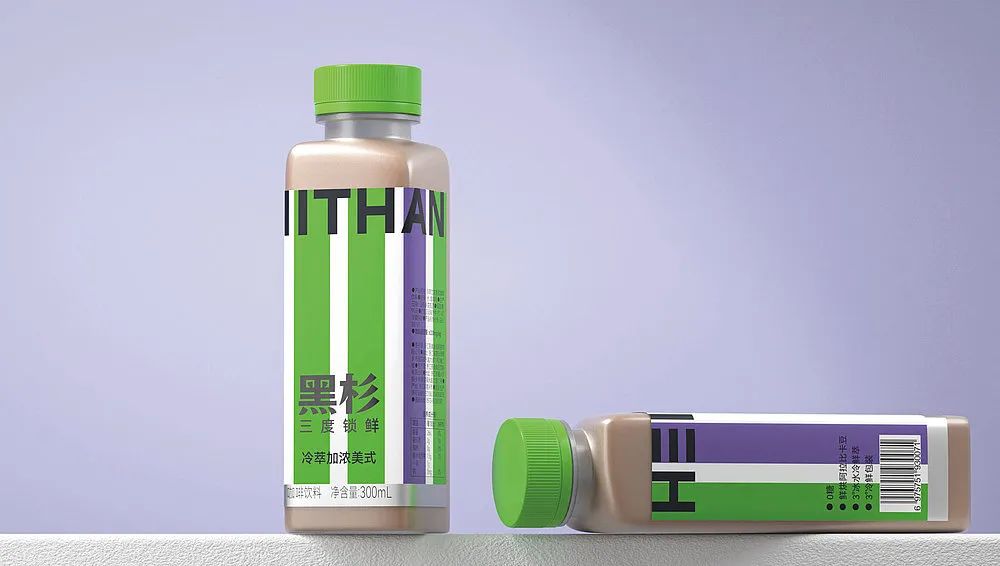 HEIITHAN冰镇特色咖啡饮料的包装瓶以简洁的方式展示了产品和品牌。标签不仅提供了内容的信息,还使用不同的颜色来帮助消费者识别不同的版本。围绕标签上边缘的品牌名称的大写字母确保了货架上的快速识别。
